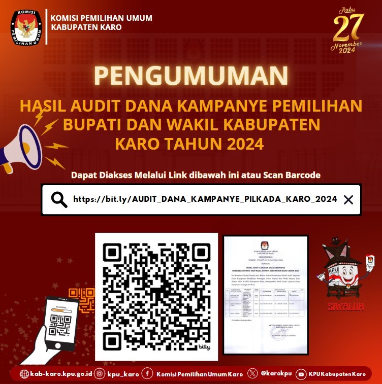 Pengumuman Penetapan Hasil Pemilihan Bupati dan Wakil Bupati Kabupaten Karo Tahun 2024