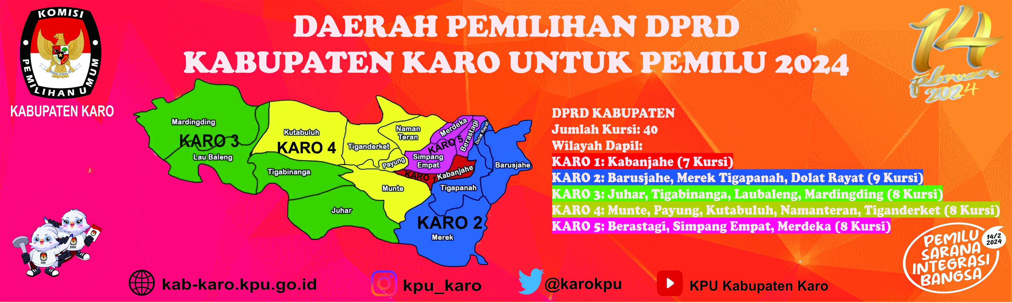DAERAH PEMILIHAN DPRD KABUPATEN KARO PEMILU 2024 Rabu, 12 April 2023 10:00 3157 Daerah Pemilihan DPRD Kabupaten Karo Pemilu Tahun 2024 Bagikan: Telah dilihat 3,157 kali