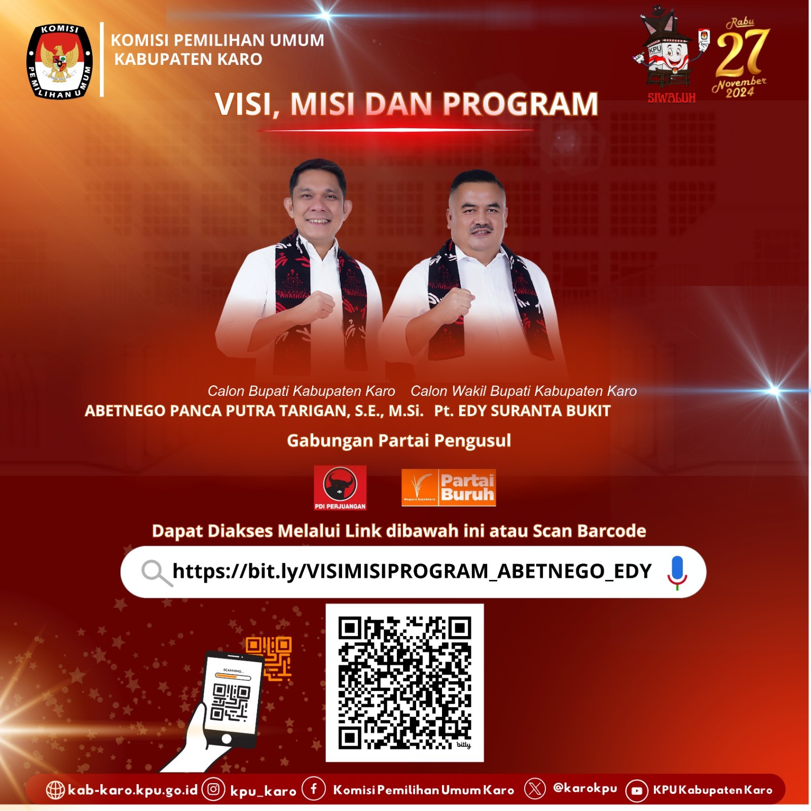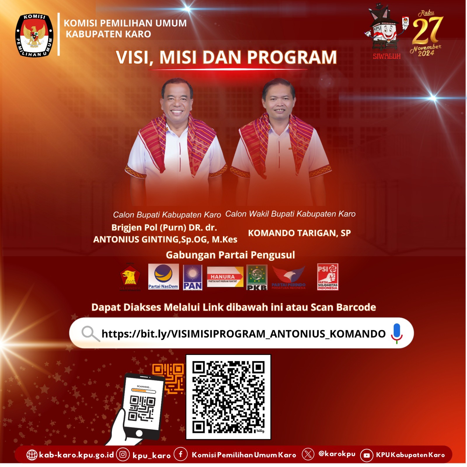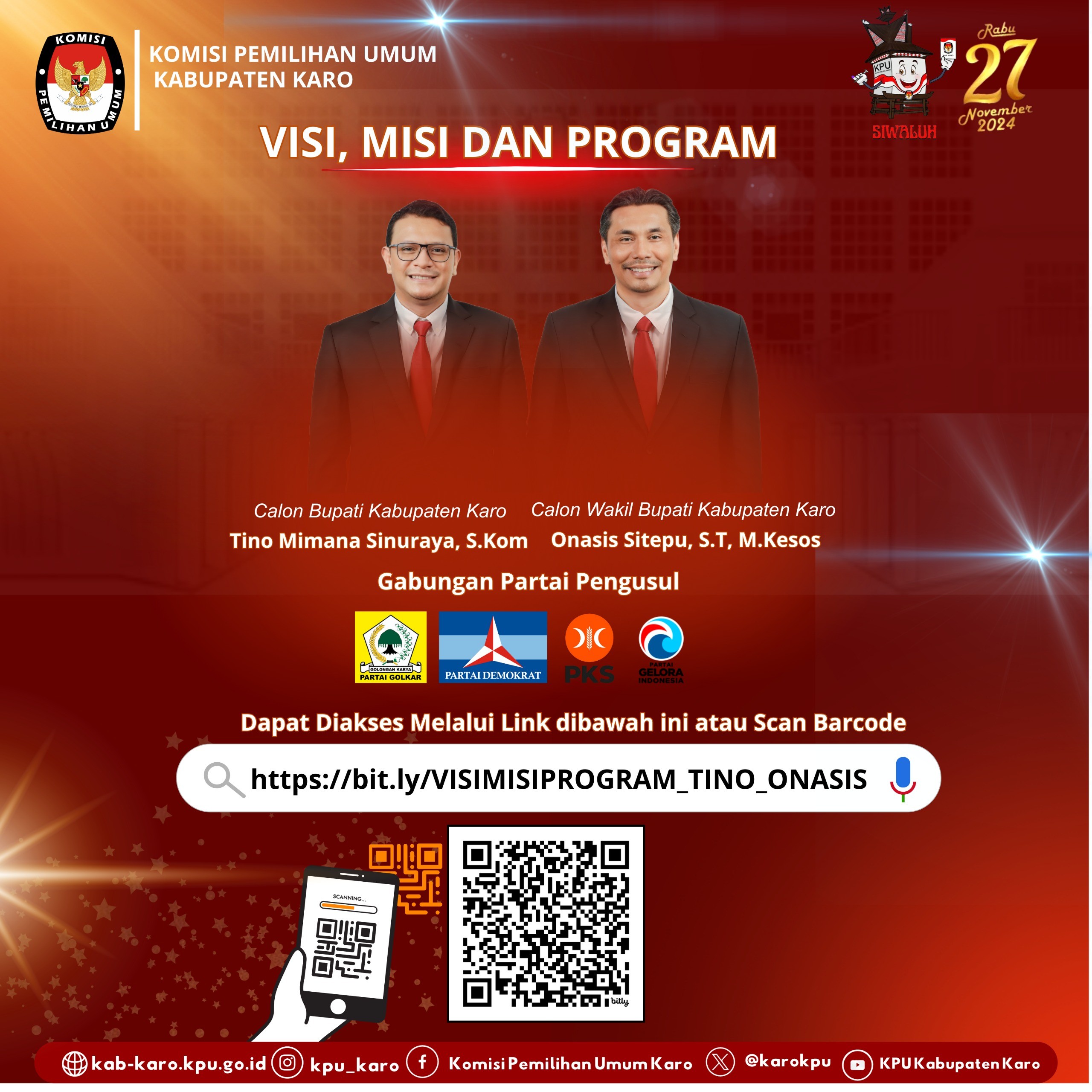 Pengumuman KPU Kabupaten Karo Nomor 1550/PL.02.2-Pu/1206/2024