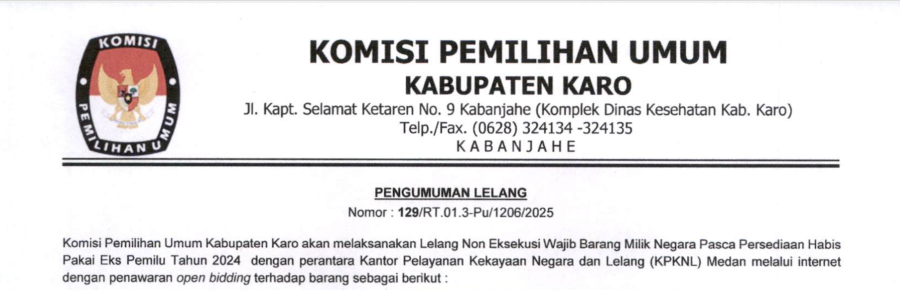 PENGUMUMAN LELANG EKS LOGISTIK PEMILU TAHUN 2024