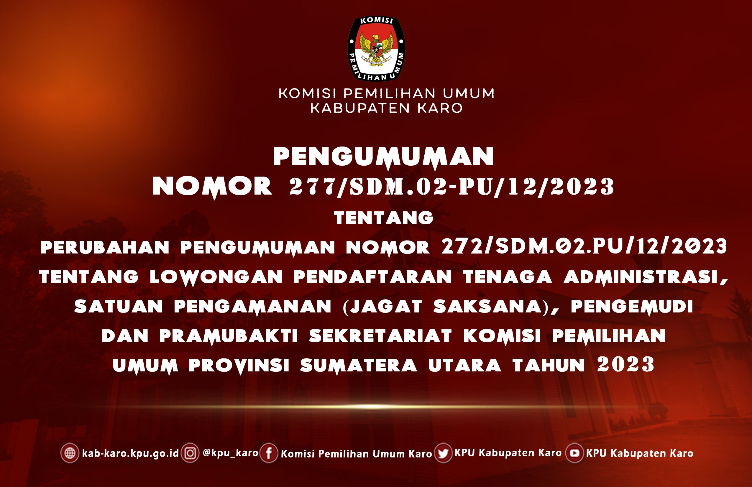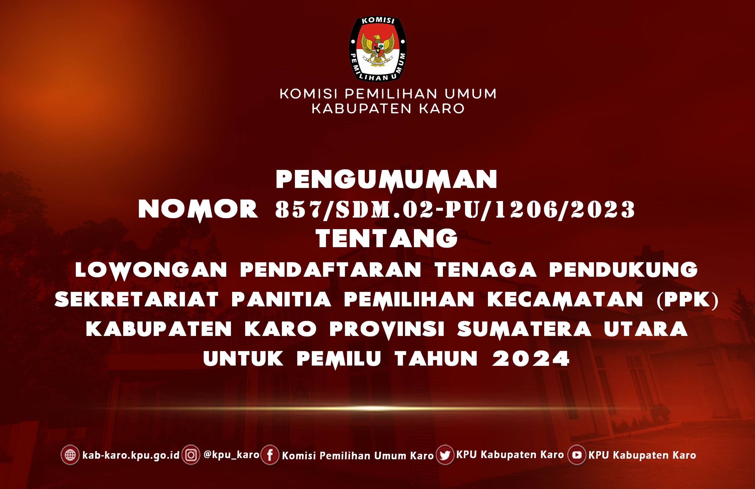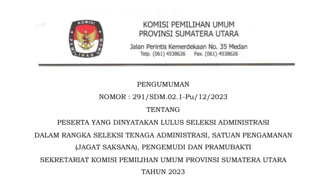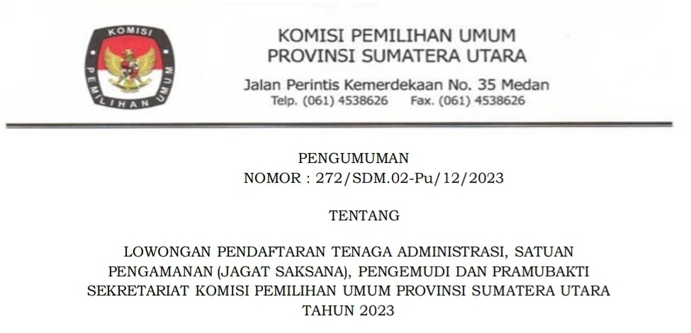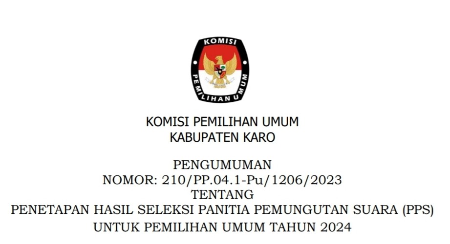 Sekretaris Komisi Pemilihan Umum Kabupaten Karo memberi kesempatan kepada Putra-Putri terbaik bangsa untuk menjadi Tenaga Pendukung Sekretariat Panitia Pemilihan Kecamatan (PPK) Kabupaten Karo untuk Pemilu Tahun 2024.