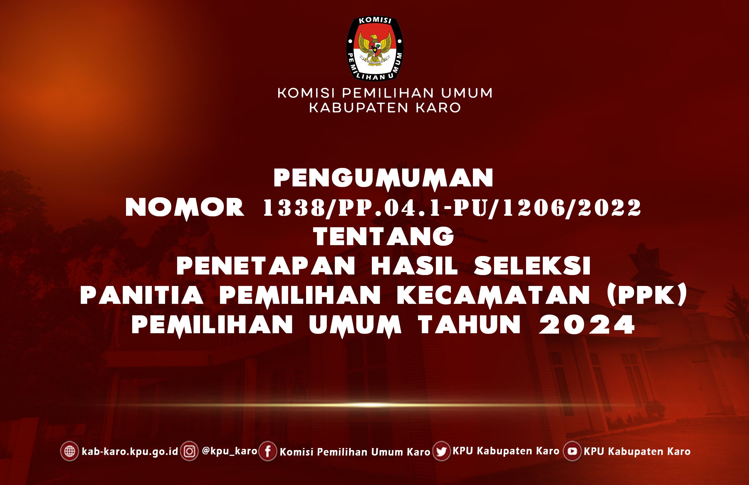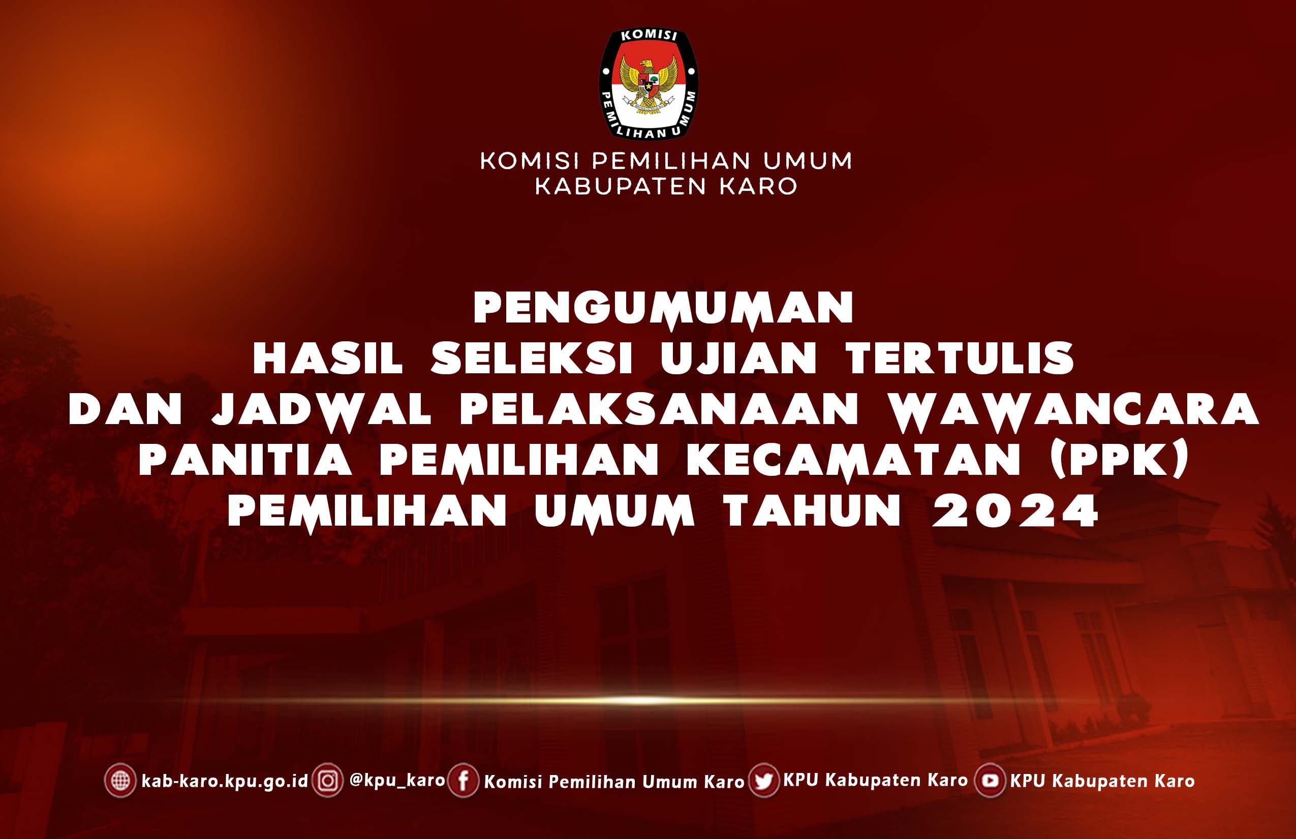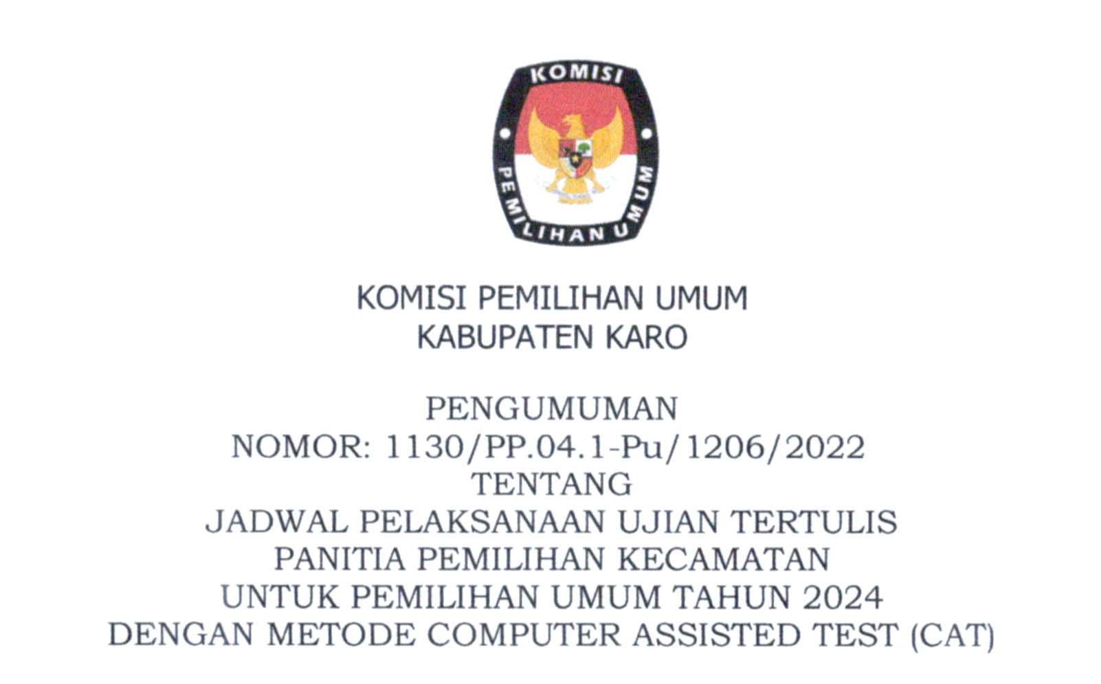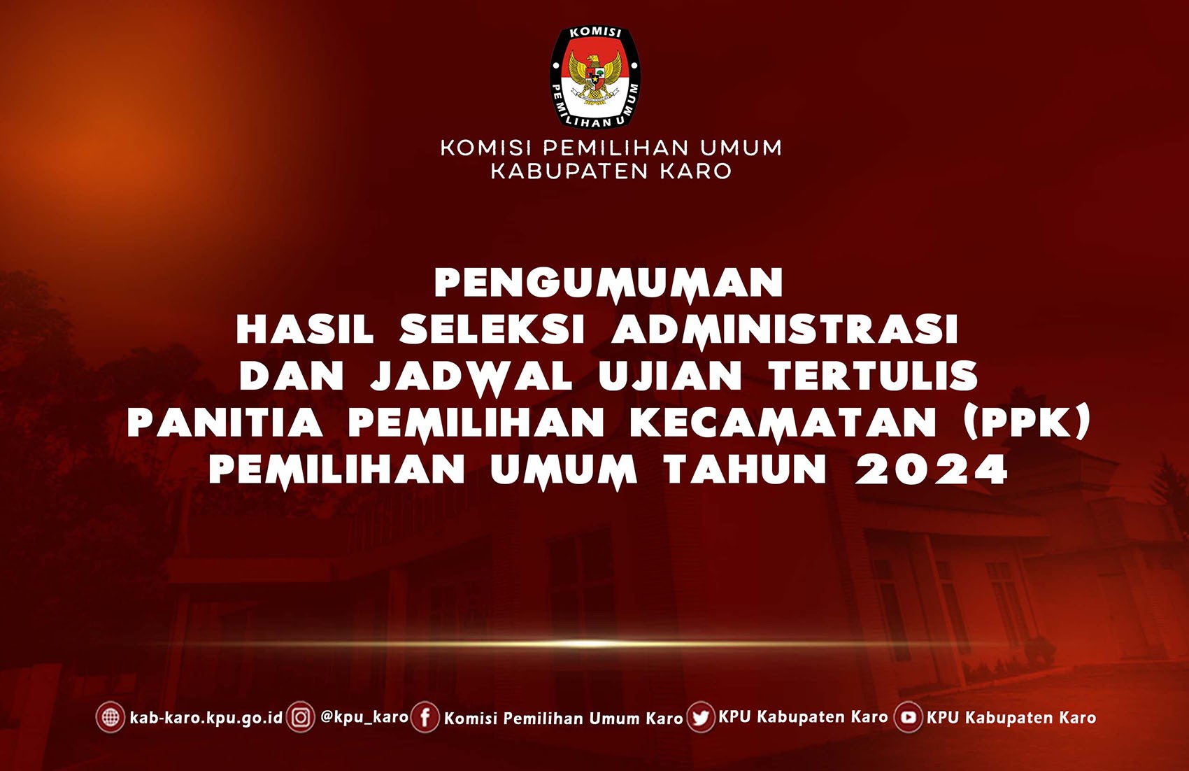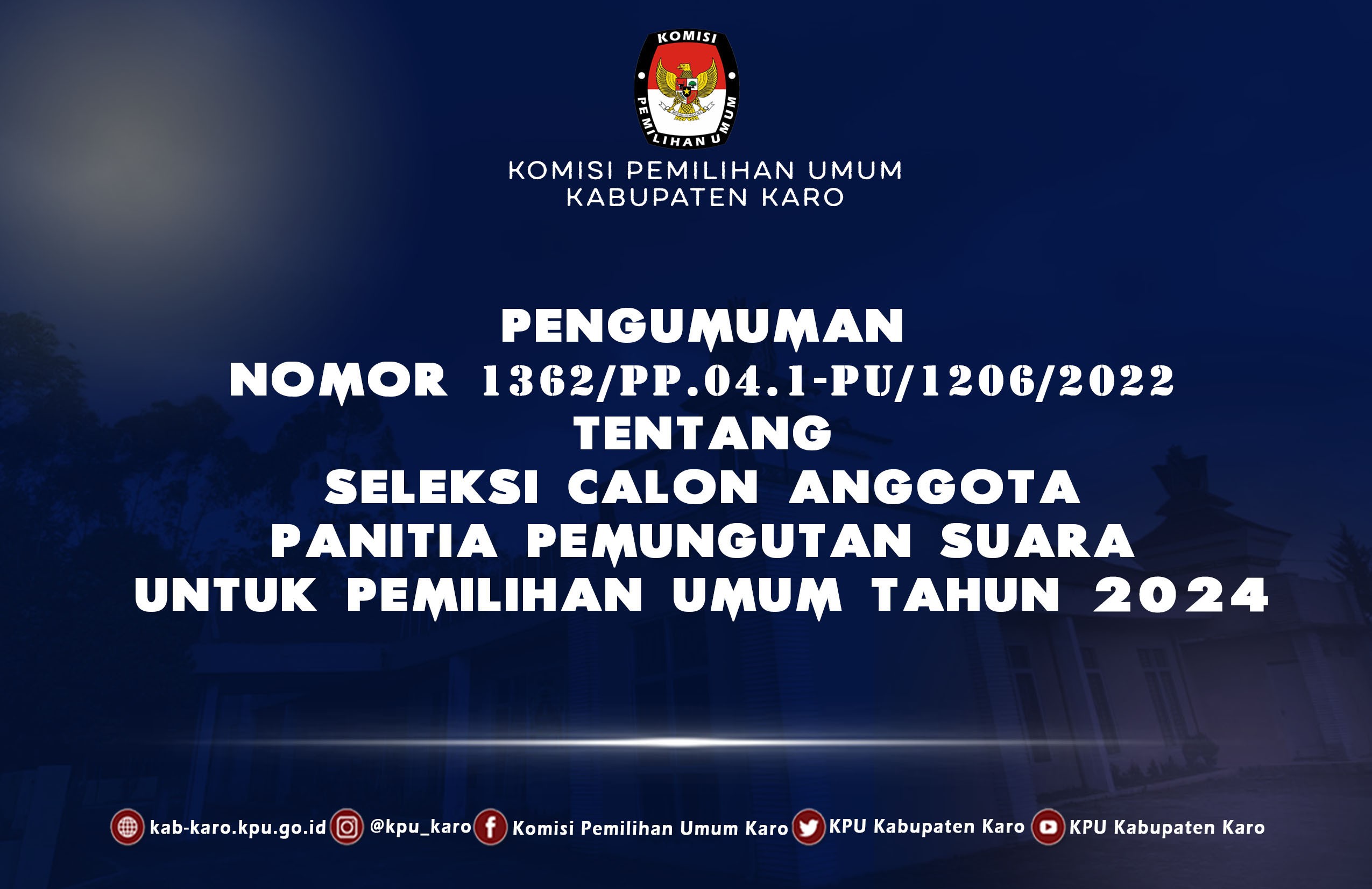 Komisi Pemilihan Umum Kabupaten Karo mengundang Warga Negara Indonesia yang memenuhi persyaratan untuk mendaftarkan diri sebagai Calon Anggota Panitia Pemungutan Suara (PPS) untuk Pemilihan Umum Tahun 2024.