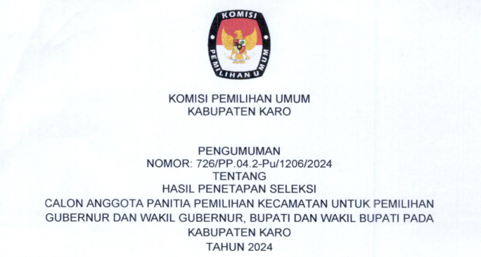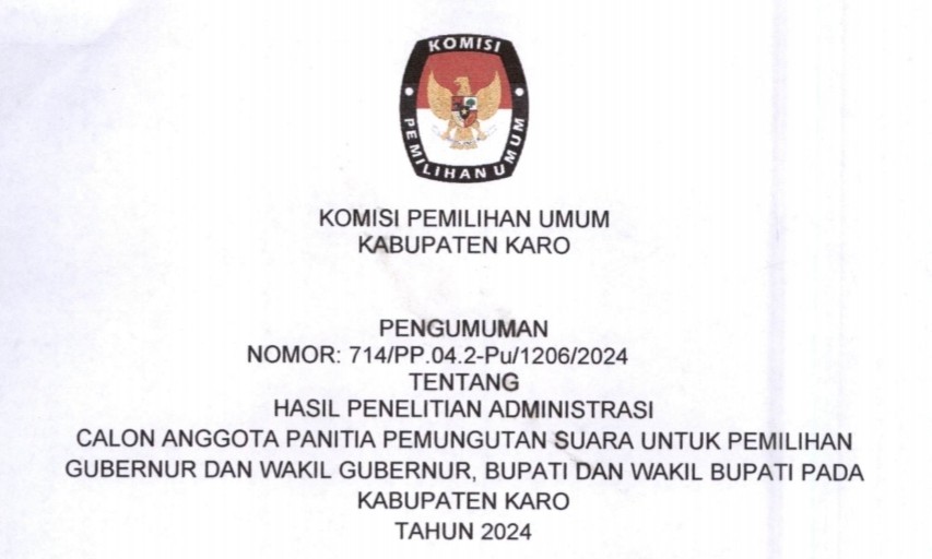 PENGUMUMAN HASIL PENETAPAN SELEKSI CALON ANGGOTA PPK UNTUK PEMILIHAN GUBERNUR DAN WAKIL GUBERNUR, BUPATI DAN WAKIL BUPATI 2024 Rabu, 15 Mei 2024 17:07 426 Pengumuman dapat dilihat DISINI Baca Selengkapnya