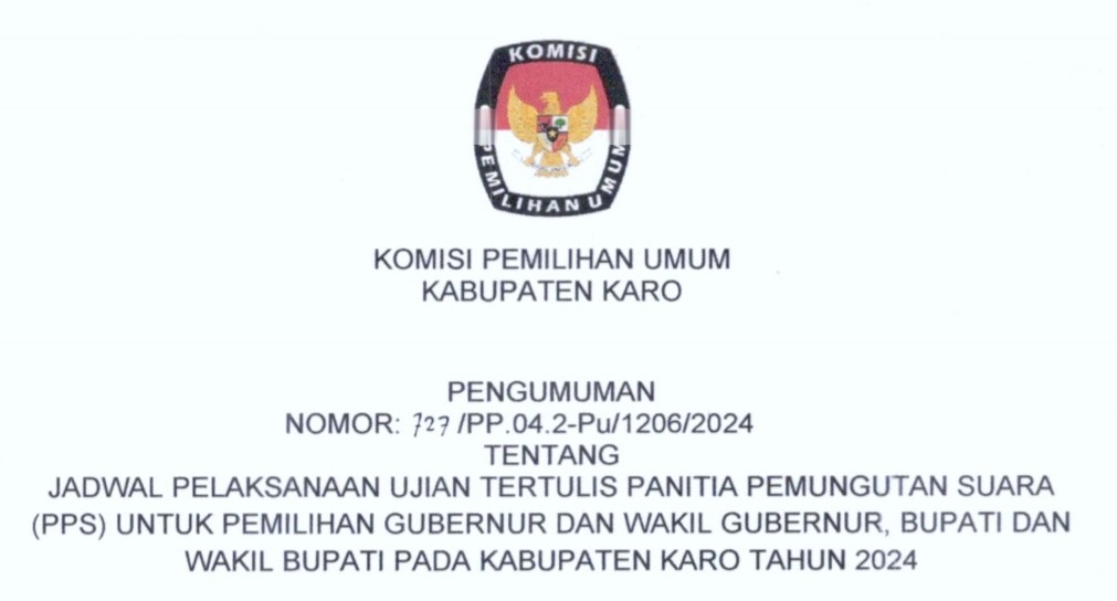 PENGUMUMAN JADWAL PELAKSANAAN UJIAN TERTULIS PPS UNTUK PEMILIHAN GUBERNUR DAN WAKIL GUBERNUR, BUPATI DAN WAKIL BUPATI 2024 Rabu, 15 Mei 2024 19:13 417 Pengumuman dapat dilihat DISINI Baca Selengkapnya