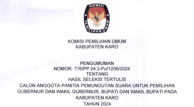 PENGUMUMAN HASIL SELEKSI TERTULIS PPS UNTUK PEMILIHAN GUBERNUR DAN WAKIL GUBERNUR, BUPATI DAN WAKIL BUPATI 2024 Minggu, 19 Mei 2024 11:36 461 Pengumuman dapat dilihat DISINI Baca Selengkapnya
